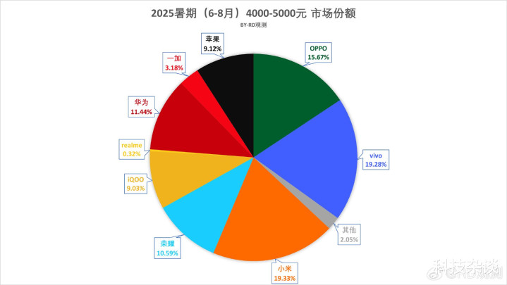近三年在4000-5000元市场小米的表现相当惊艳我要配资网网,算整体数据可能是排名第一的品牌。但在这个暑期(6-8月),小米却不是排名第一的品牌,且这个档次的市场已经变天,vivo成为了新王。