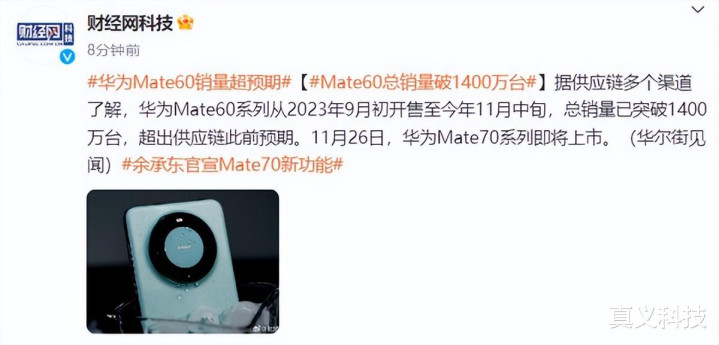 所以受限于麒麟芯的存量难题,Mate40 Pro 销量铁定高不了。接下来再看Mate60系列的销量具体有多少,其中比较权威的数据可以参考下图,Mate60系列上市一年多销量已突破1400万台!