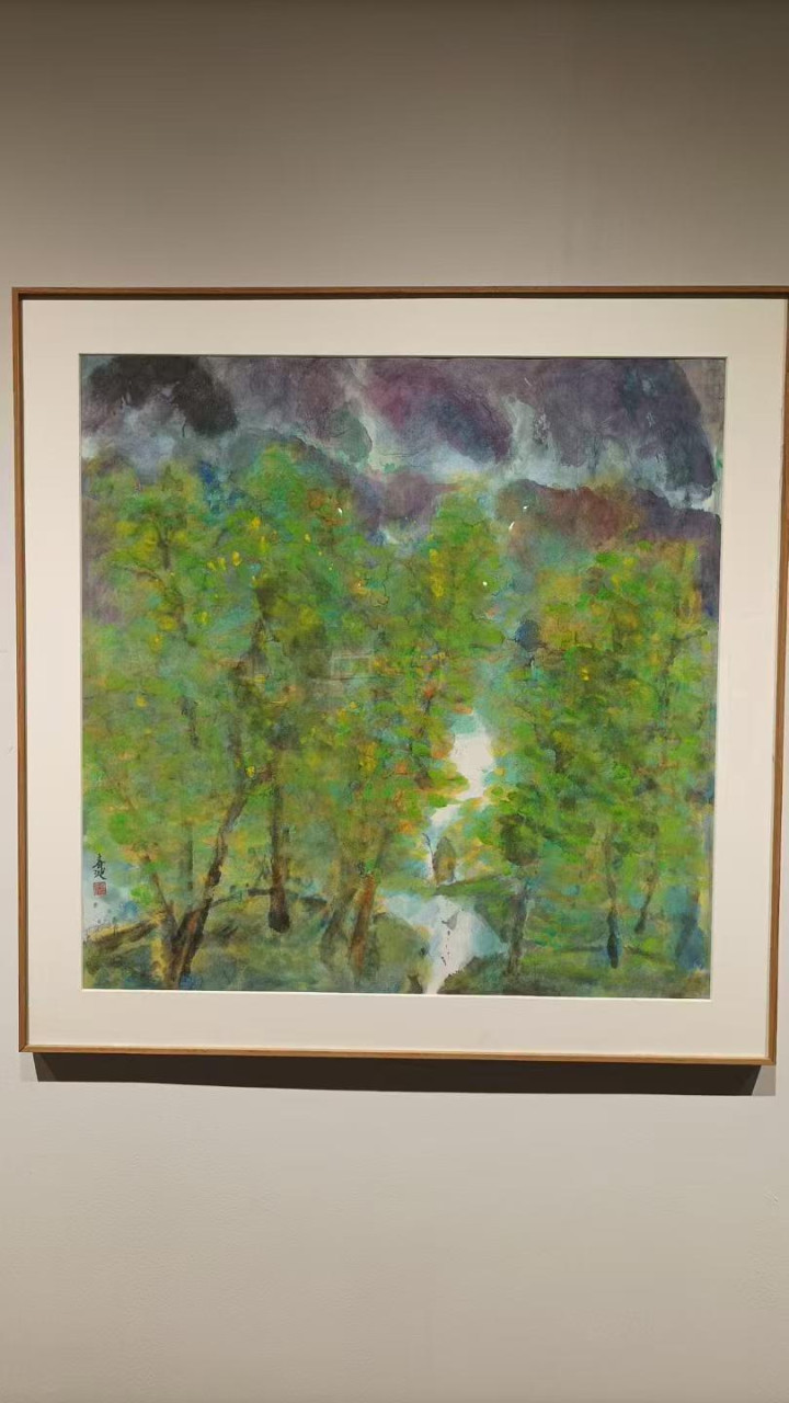 今天在“阅见西湖”二楼的展厅里看史春波的花花世界,好多画面我太熟悉了——在浙江日报社钱江晚报·潮新闻文娱工作室里,他的办公桌就在我工位后面,这些斑斓的丙烯、颜料还没干的时候,我就见过它们制造的烂漫花枝。